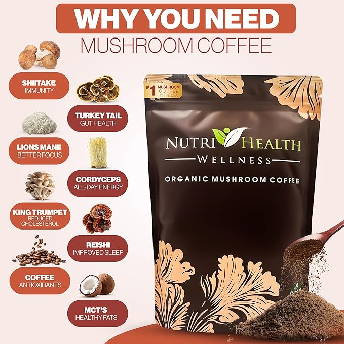 Organic Mushroom Coffee by Nutri Health Wellness | 30 Servings + Free Spoon